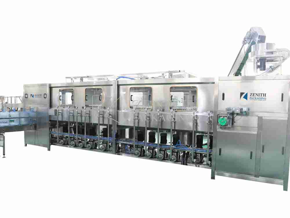 Zenith 5 gallon water filling machine adopts several new technologies such as pneumatic transmission, fully enclosed pressure filling, and liquid level detection. All actions, detections, and controls are controlled by a microcomputer (PLC), which makes the machine more hygienic, safe, and stable, and greatly reduces the occurrence of failures. , so that the scope of application is wider.