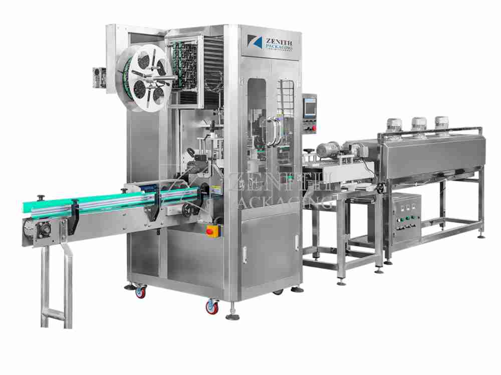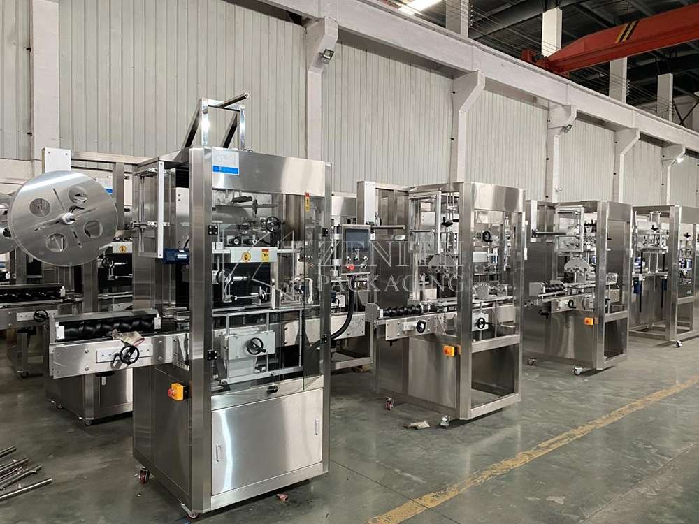 Automatic linear shrink sleece labeling machine is the advanced continous operation of the labeling machine. The labeling machine is mainly used for container labeling cylindrical, square or other special shape of detergents, beverages, mineral water, food etc. Labeling machine is control by PLC touch screen, all photo sensros are imported advanced configuration. The shrink labeling machine with high speed, high accuracy, stable performance, easy to operate and look elegant appearance.