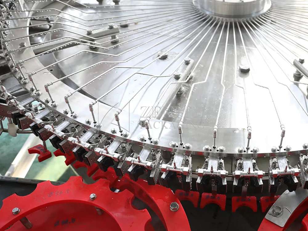 1. Bottles transmission adopts bottlenecks clamping technology, no need to adjust the equipment height when changing bottle volume, simply replace guide plate, thumb wheel that related to the bottle diameter and mouth.