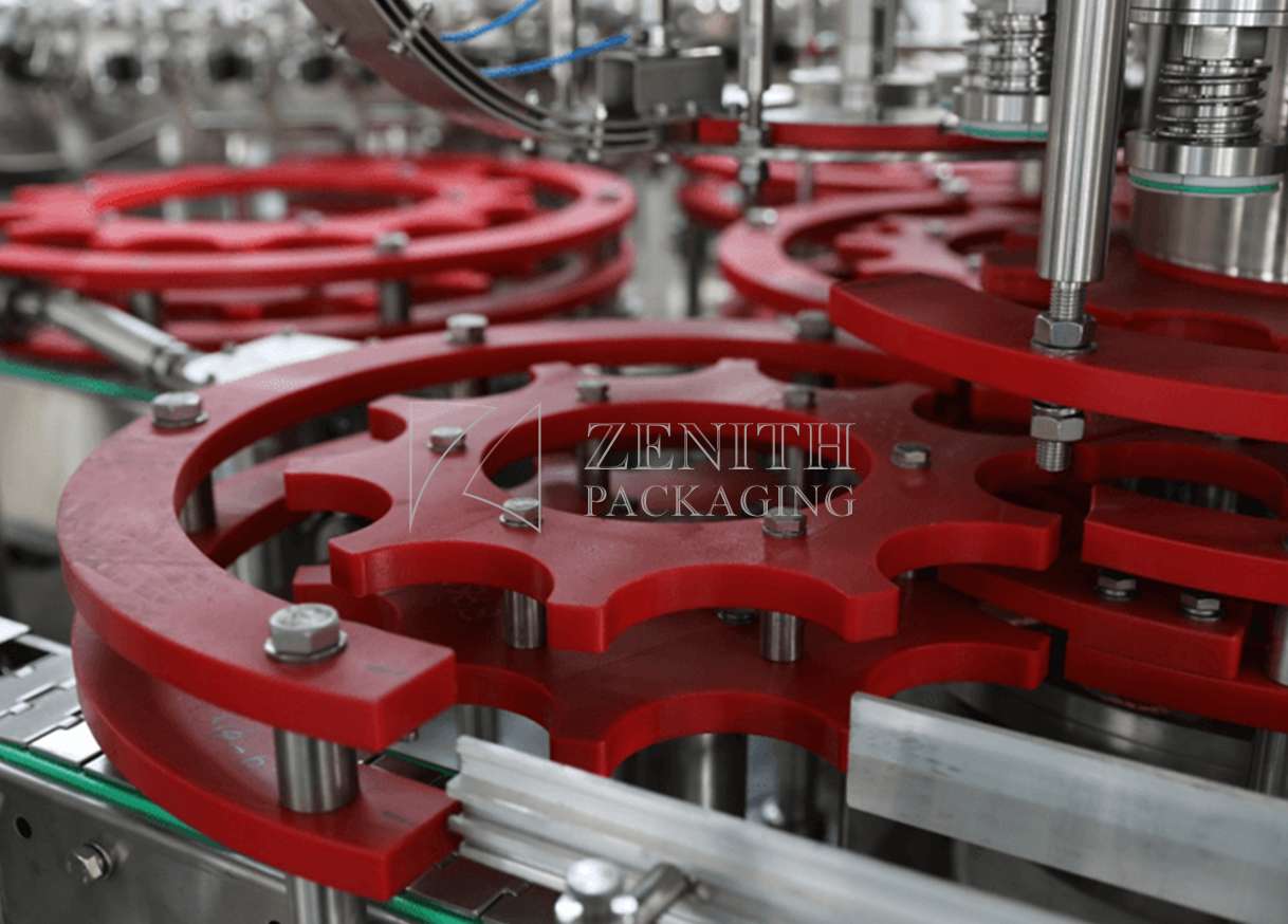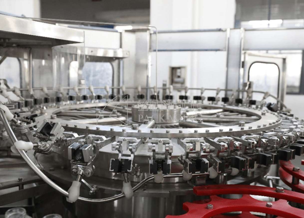 6.There are aseptic nozzles between the transition poking wheel and filling parts to rinse the product rested in the bottleneck screw parts. 7.There is a cap-lock cylinder in the joint between the cap-falling guide and poking cap plate. It is realize that no feeding no cap.